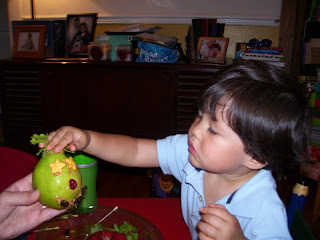 We've been spending time inside due to the 105 to 115 heat index. SOoooo... this gives us alot of time to do arts and crafts. On this day we made "Pear People". Sorry the pics are out of order.